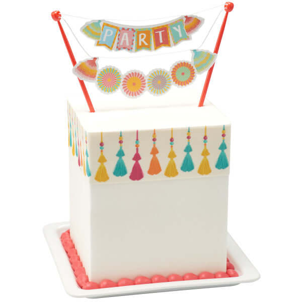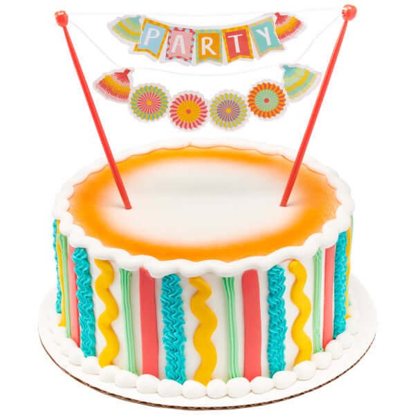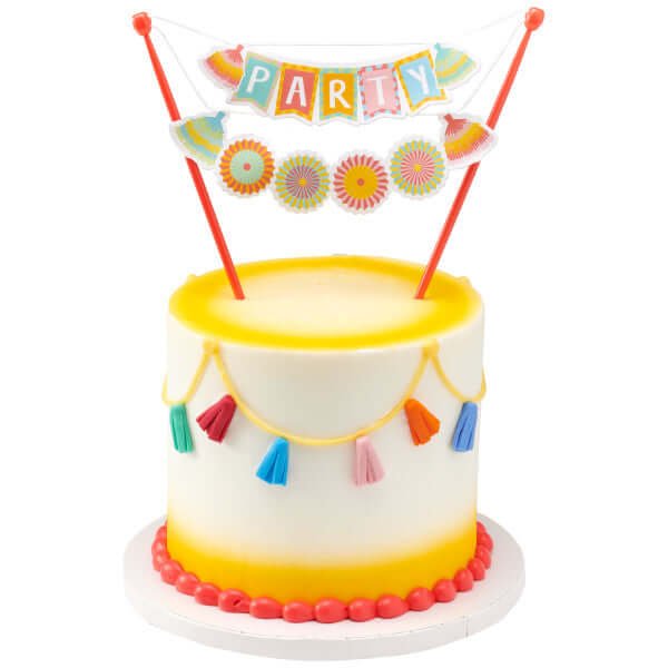 Elevate your cake party game with this classic and festive cake topper banner! Add some flair and dimension to your cake design with its backyard party vibe.